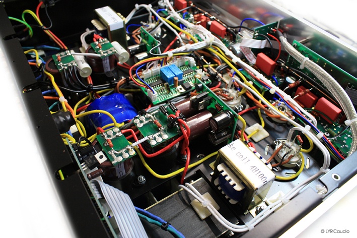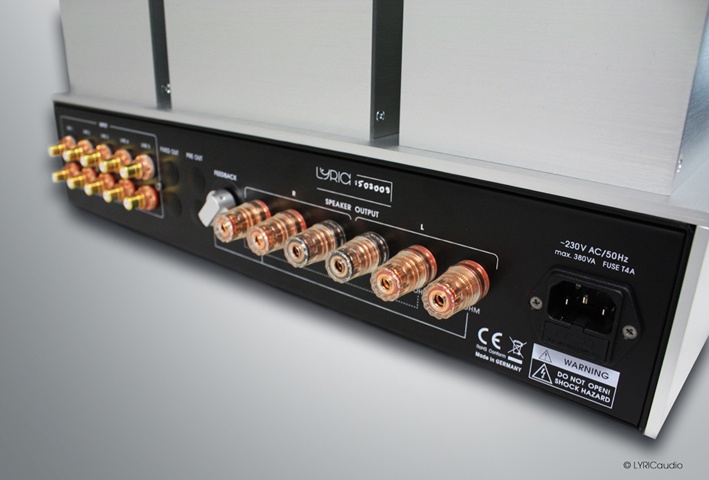 Der Lyric Ti140 lässt sich wahlweise mit EL34, KT88, KT120 oder KT150 betreiben. Die Eingangsstufe ist mit einer 12AX7 bestückt, die Phasenumkehr wird mit einer 12AU7 realisiert. Eine starke 6SN7-Doppeltriode dient als Treiber für die Endröhren. Zur Einstellung des Bias gibt es eine spezielle Messschaltung, die je nach Röhrentyp den optimalen Arbeitspunkt anzeigt.